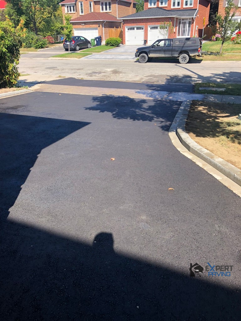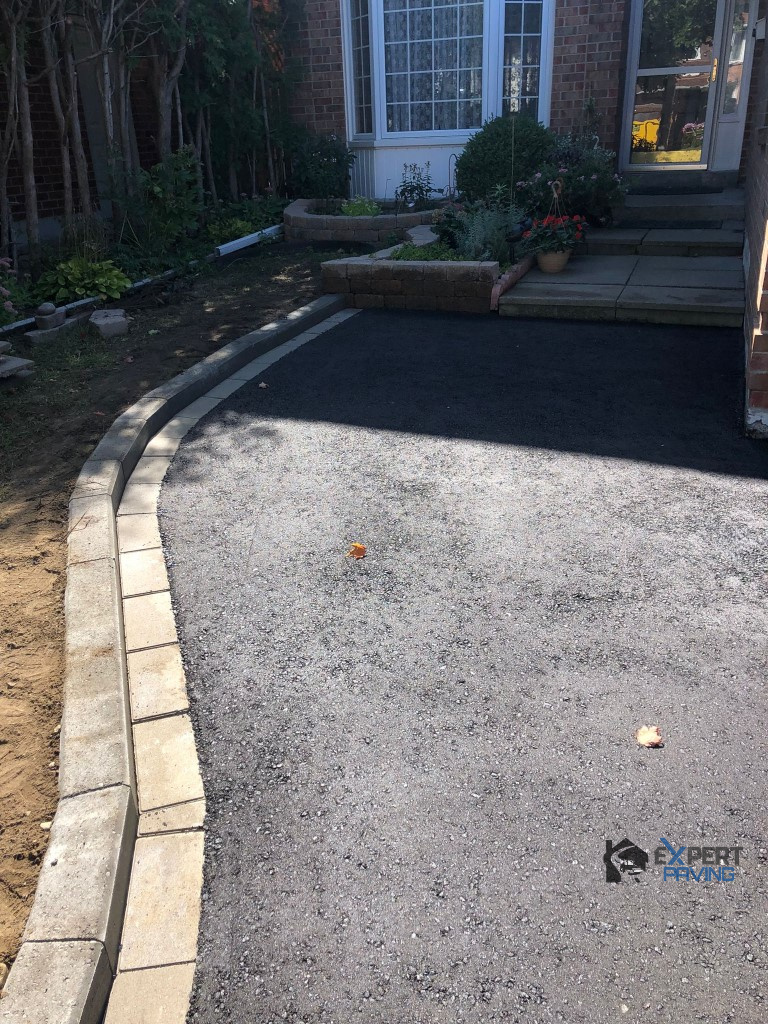 Another beautiful job has been completed by Expert Paving and Masonry in Toronto. This driveway features asphalt top finish with interlocking edge and curbing.